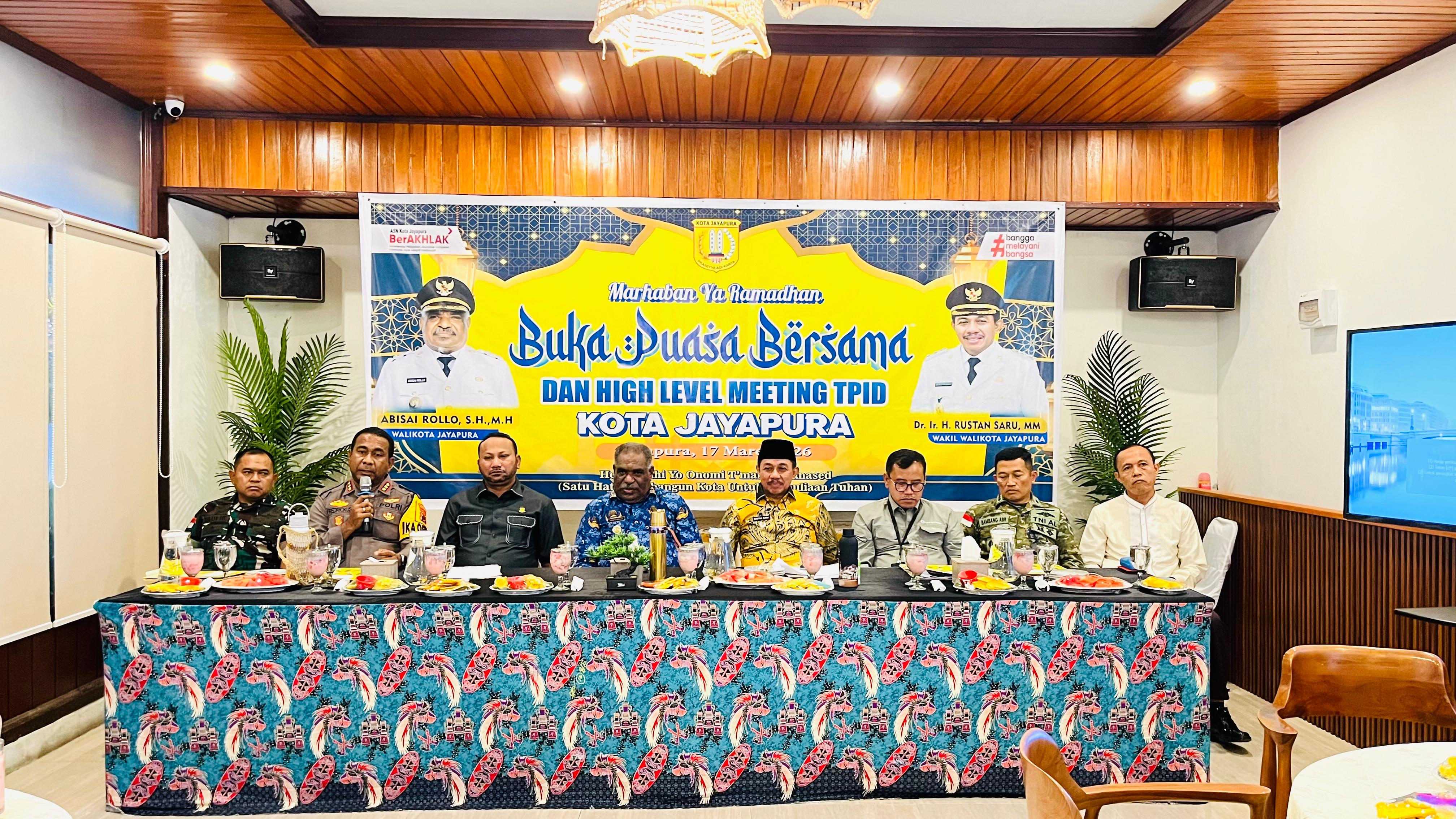 Pemerintah Kota Jayapura bersama Forkopimda menggelar Rapat Koordinasi pengendalian inflasi daerah yang dirangkaikan dengan buka puasa bersama di Cafe Djuragan Dapur, Distrik Abepura, Selasa (17/3/2026).